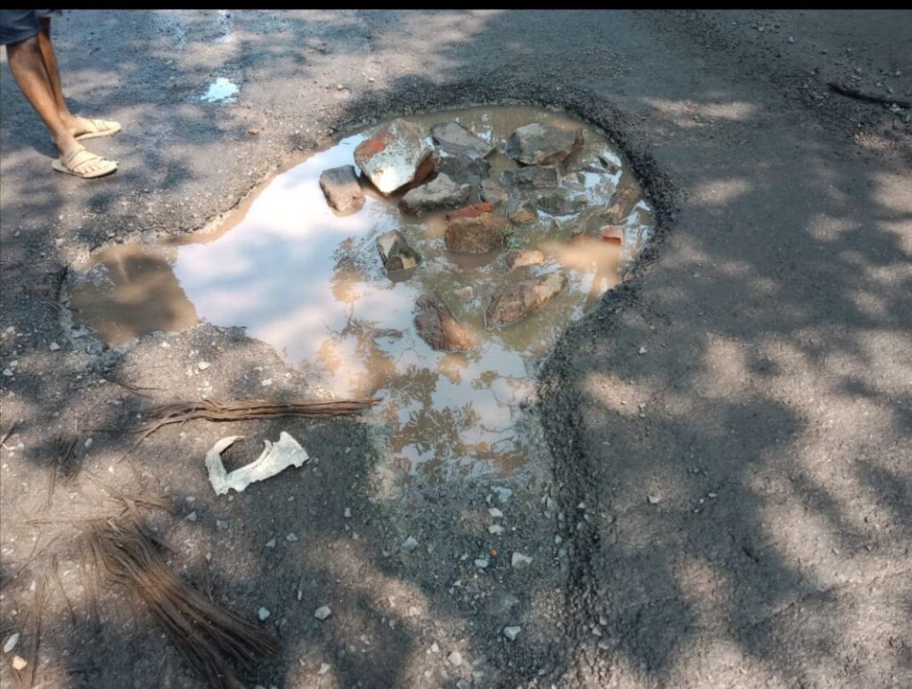 सड़क पर बड़े बड़े गड्ढे