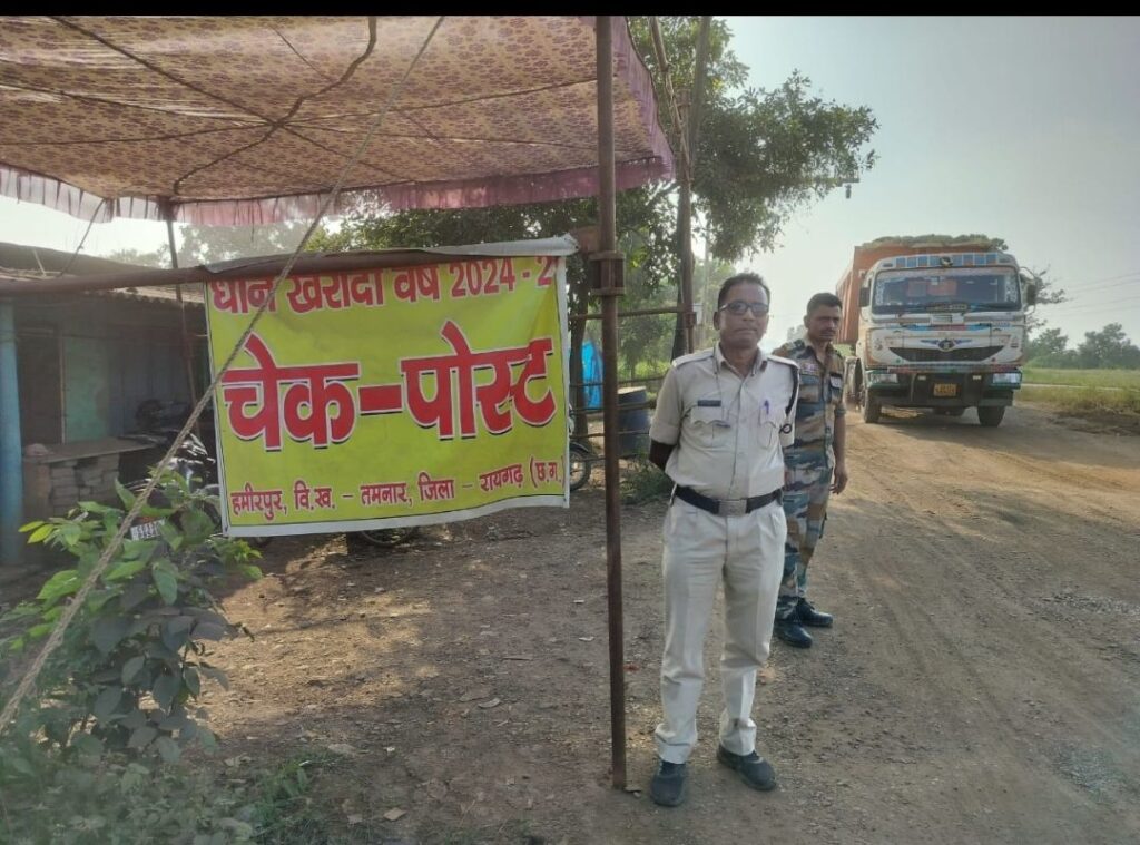 रायगढ़/तमनार। धान खरीदी वर्ष 2025-26 को ध्यान में रखते हुए प्रशासन ने ओड़िशा से अवैध धान की तस्करी रोकने के उद्देश्य से हमीरपुर बॉर्डर पर चेकपोस्ट स्थापित किया है। हालांकि, क्षेत्रीय सूत्रों का कहना है कि यह कदम केवल “दिखावे की कार्रवाई” साबित हो सकता है, क्योंकि जिले के अन्य सीमावर्ती इलाकों से अब भी ओड़िशा की ओर धान का अवैध आवागमन बेरोकटोक जारी रहने की संभावना बनी हुई है।