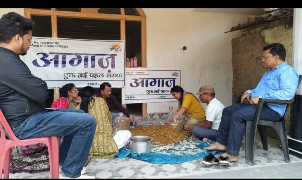 विजयपुर, रायगढ़ — आगाज़ एक नई पहल संस्था द्वारा सोमवार, दिनांक 16 नवंबर 2025 को मशरूम उत्पादन का विशेष प्रशिक्षण कार्यक्रम सफलतापूर्वक आयोजित किया गया। यह प्रशिक्षण संस्था परिसर में हुआ, जिसमें बड़ी संख्या में सदस्य एवं ग्रामीण प्रतिभागी उपस्थित रहे। कार्यक्रम की मुख्य ट्रेनर श्रीमती कमला साहू ने प्रतिभागियों को मशरूम की आधुनिक खेती तकनीक, कम लागत में अधिक उत्पादन, पौष्टिक गुणों एवं बाजार में उपलब्ध अवसरों के बारे में विस्तृत मार्गदर्शन दिया।