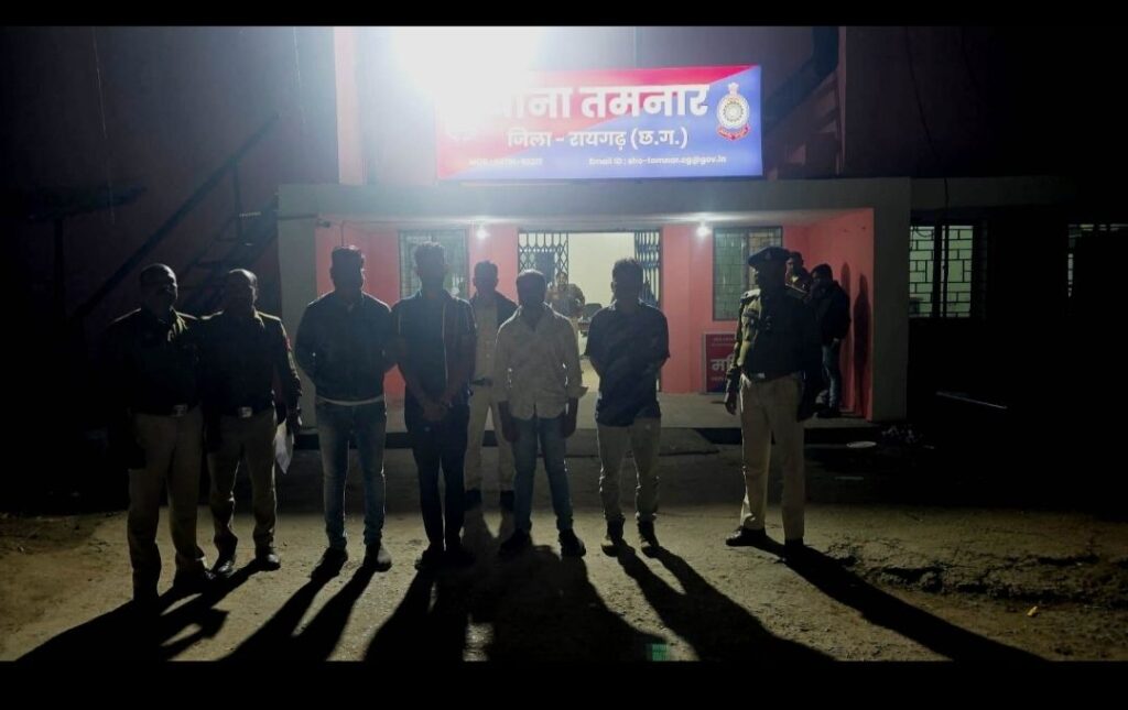 ● तमनार क्षेत्र में रातभर चली छापेमारी, औचक निरीक्षण में चार संदिग्ध गिरफ्तार, तमनार पुलिस ने कार्यवाही कर भेजा जेल *रायगढ़, 29 नवंबर* । कलेक्टर सर और एसपी सर द्वारा अवैध धान की आवक रोकने तथा कानून-व्यवस्था बनाए रखने को लेकर अधिकारियों की संयुक्त बैठक का सीधा असर जिले में दिखने लगा है। कल 28 नवंबर 2025 को कलेक्टर एवं पुलिस अधीक्षक ने जिले के प्रशासनिक अधिकारियों, राजपत्रित पुलिस अधिकारियों और सभी थाना–चौकी प्रभारियों की महत्वपूर्ण बैठक लेकर धान खरीदी व्यवस्था, औद्योगिक सुरक्षा, यातायात नियंत्रण और अवैध गतिविधियों की रोकथाम के लिए स्पष्ट दिशा-निर्देश जारी किए थे। प्राप्त निर्देशों के बाद उसी रात एसडीएम घरघोड़ा, तहसीलदार तमनार और थाना प्रभारी तमनार की टीम ने ग्राम बिजना, केशरचुंआ, धौरांनांठा, हमीरपुर बॉर्डर, पालीघाट और जोबरो में औचक निरीक्षण कर धान कोचियों की संभावित गतिविधियों की जांच की, जहां ग्राम कर्रापाली के पास टाटा नैक्सन क्रमांक CG 13 AR 0990 में चार संदिग्ध बैठे मिले। अधिकारियों द्वारा पूछताछ पर वे उल्टे-सीधे जवाब देने लगे और विवाद की स्थिति पैदा की, जिसके बाद संज्ञेय अपराध की आशंका पर थाना प्रभारी कमला पुसाम ने सभी को थाना ले जाकर धारा 170 BNSS के तहत गिरफ्तार कर परिजनों को सूचना दी, वहीं आज चारों के विरुद्ध धारा 126 और 135(3) BNSS के तहत इस्तगासा तैयार कर कार्रवाई की गई। गिरफ्तार व्यक्तियों में दिनेश अग्रवाल (40) निवासी धौराभांठा, राजेश कुमार गुप्ता (36) निवासी टटकेला, कुलदीप गुप्ता (26) निवासी बिजना और भीष्मदेव गुप्ता (37) निवासी बिजना शामिल हैं।